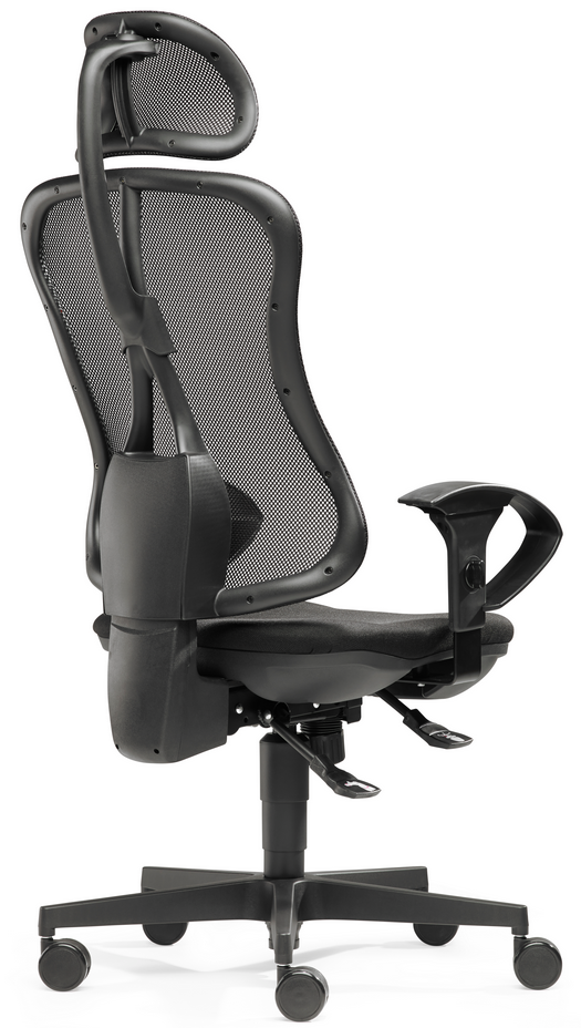 - Ergonomische Rückenlehne mit atmungsaktivem Netzbezug und integrierter Lendenwirbelstütze
